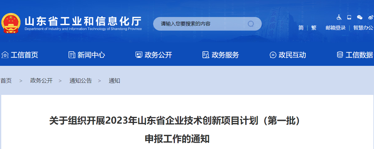 為深入貫徹全省加力提速工業(yè)經(jīng)濟(jì)高質(zhì)量發(fā)展大會(huì)精神,落實(shí)省政府工作報(bào)告,加力科技創(chuàng)新,提升自立自強(qiáng)水平,增強(qiáng)企業(yè)自主創(chuàng)新能力和核心競(jìng)爭(zhēng)力,推動(dòng)產(chǎn)業(yè)基礎(chǔ)高級(jí)化和產(chǎn)業(yè)鏈現(xiàn)代化,現(xiàn)組織開展2023年山東省企業(yè)技術(shù)創(chuàng)新項(xiàng)目計(jì)劃(第一批)申報(bào)工作。具體事項(xiàng)通知如下: