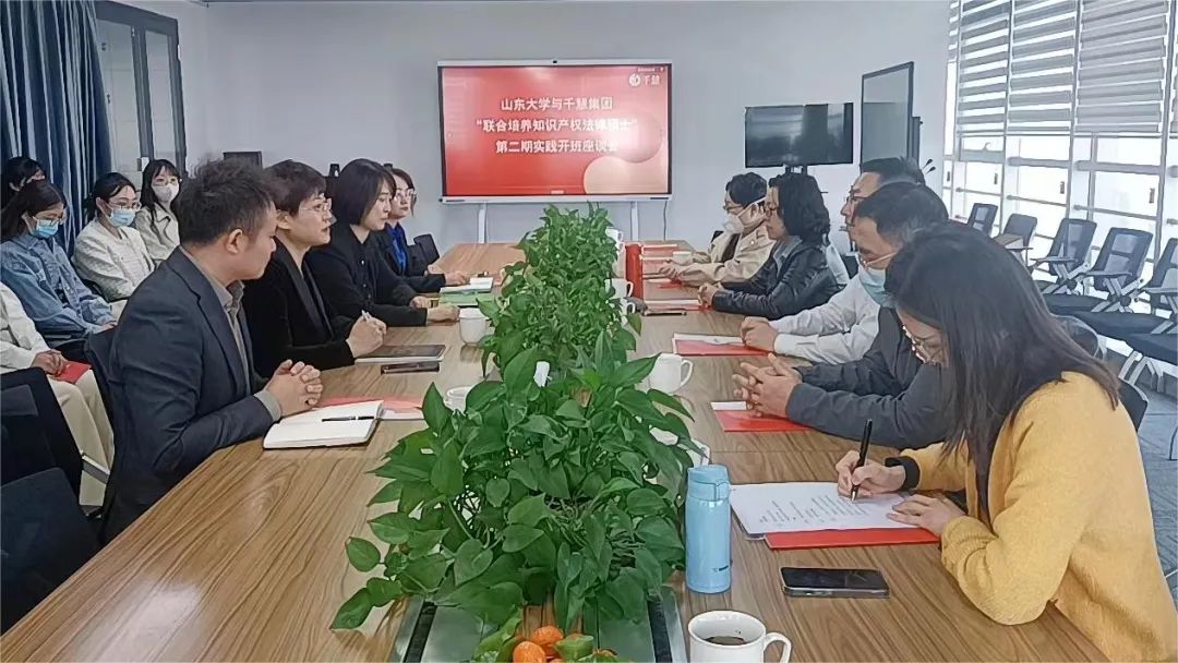 2023年3月6日,山東大學與千慧集團“聯合培養知識產權法律碩士”,第二期實踐開班座談會在濟南市互聯網大廈36樓(千慧集團)會議室順利舉行。此次實踐學習,是繼2021年,山東大學與千慧集團正式達成合作之后,迎來的第二批知識產權班學生實踐項目。