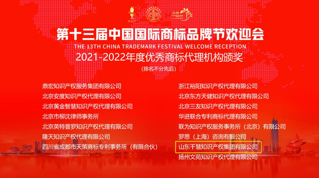 初心不負,載譽而歸 | 千慧集團榮獲2021-2022年度“優秀商標代理機構”與“商標代理典型案例”