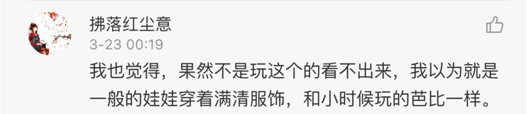 故宮文創根據中國人的傳統五官印象,設計成了這款烏發杏眼,寬額小嘴的中國娃娃。故宮文創方面表示,娃娃首次選擇了清代服飾,并在工藝允許的基礎上努力還原真實的清朝格格形象,之后還會陸續推出不同朝代的格格或公主服飾單品。