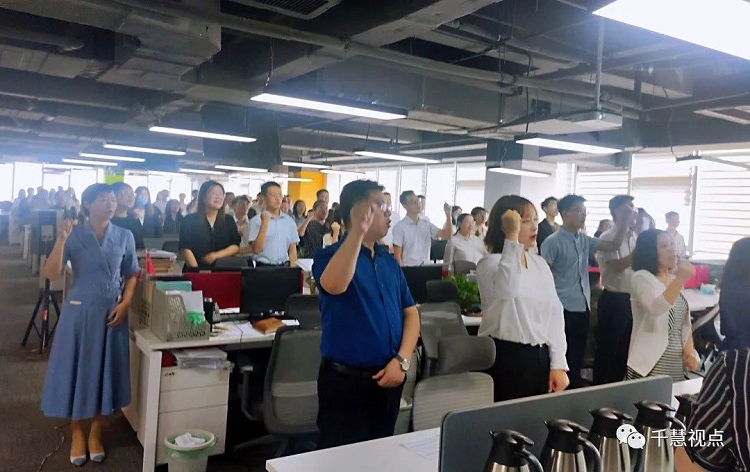 “千慧家人早上好”、“好”……異口同聲的回答調(diào)動起大家的情緒,瞬間讓大家從個體凝聚在一起。因為疫情,這次千慧人年后以來首次在晨會中相聚;多年來,晨會已經(jīng)走進所有千慧人的心坎,成為彼此間的一種習(xí)慣、一種默契。