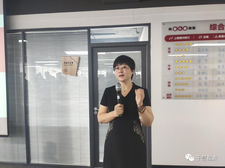 李俠董事長首先代表全體千慧家人對新人們的到來表示歡迎,希望新人們在千慧腳踏實地,做到有成長、有收獲、有未來。她表示,千慧文化不是掛在墻上的條文,而是融入到千慧人血液里的,潛意識地影響千慧人工作與生活的靈魂篇章,希望全體家人通過晨會切身感知千慧文化,做到躬身入局,正言正心正能量。