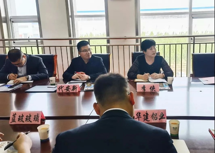 5月8日,千慧集團李俠董事長帶領代安新主任、趙德豐主任 、尹國塞顧問一早驅車前往濰坊,上午9點,與臨朐縣市場監(jiān)督局領導碰頭展開短暫的溝通會議,隨即趕往山東華特磁電股份有限公司,在臨朐縣促進會的組織下,與山東華建鋁業(yè)集團有限公司、山東藍玻玻璃科技有限公司、山東嘉源環(huán)保科技有限公司、山東無框服飾有限公司展開座談會。