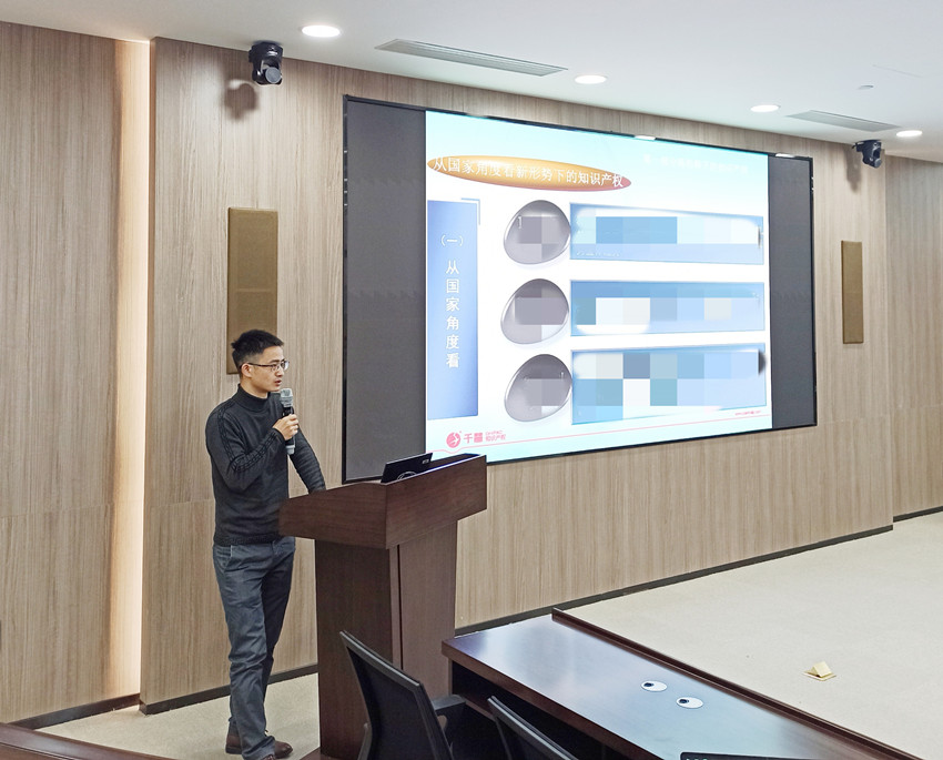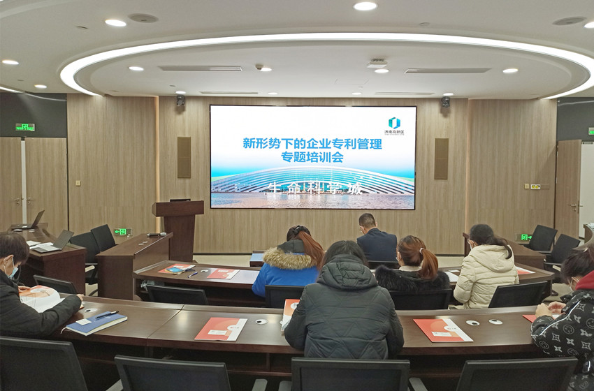 2021年12月8日,千慧知識產權集團作為濟南市高新區生命科學城知識產權工作站服務機構,吳紹群總監、周金林總監、陳華顧問應邀為園區內企業開展“新形勢下的企業專利管理專題培訓會”。