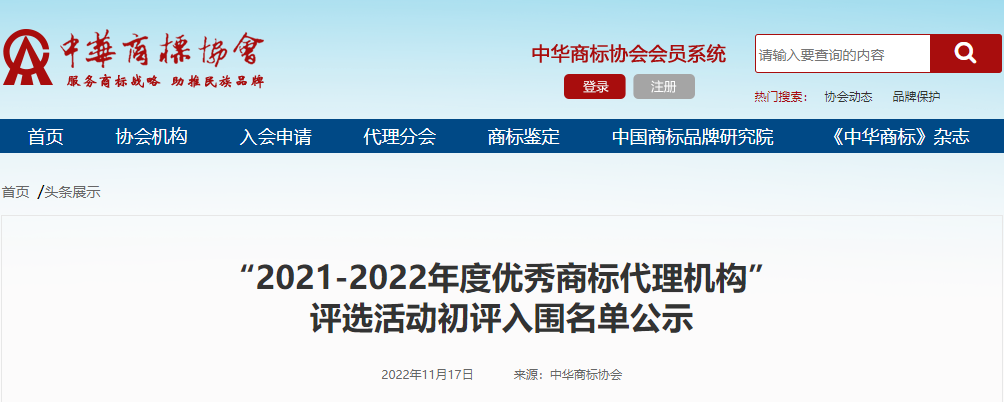 喜訊!山東千慧知識產權集團有限公司入圍“2021-2022年度優秀商標代理機構”評選活動初評名單