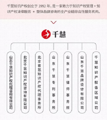 山東千慧知識產權代理咨詢有限公司是中國首批經政府批準成立的專業知識產權代理機構,1992年創立于山東濟南,經過20多年的發展,已經發展成了涵蓋知識產權全產業鏈服務的集團企業,在全國各地設立了多個分公司和分支機構,擁有國內綜合型知識產權專家團隊,專利代理人、律師、咨詢師、知識產權顧問等各類專家200余人,成員大多具有10余年從業經驗,業務覆蓋商標、專利、版權、品牌策劃、法律訴訟、項目申報等知識產權全產業鏈,累計服務客戶數十萬家。公司知識產權業務代理量與規模連續16年居全省領先水平,系全國知識產權專業服務機構十五強,涉外業務排名全國前十。作為中國領先的全產業鏈知識產權服務專業集團,千慧與全球100多個國家的企業建立了密切的合作關系。