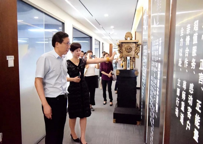 首先,李俠董事長陪同各位領導參觀了千慧集團的辦公環境及企業文化長廊。