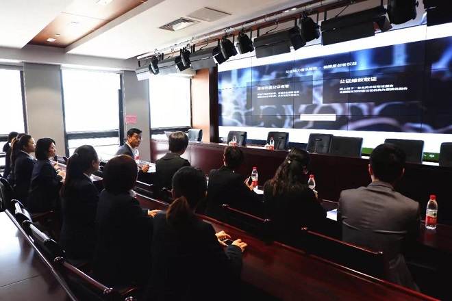 簽約儀式結束后,雙方以“公證與知識產權保護”為主題召開了座談會。座談會上,高新公證處公證員為李俠董事長演示了其在音樂權益保護方面的創新做法“映光計劃”,以及高新公證處作為本地首家入駐“中國知識產權公證服務平臺”的公證機構在知識產權證據電子化固定方面的創新和優勢。李俠董事長表示,公證人員的精神面貌、專業素質和優質的服務水平讓我們更加堅信兩家單位的合作前景將會為知識產權行業帶來積極影響。