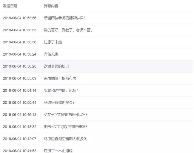 為更好的解決客戶問題,了解客戶需求,本次采用了抖音直播、彈幕互動的新穎方式讓客戶充分參與培訓當中,本次會議相關抖音視頻播放量達730萬,點贊量達13萬,現場彈幕參與互動達1500人次,共發送彈幕互動578條,以下為彈幕內容及抖音平臺部分截圖