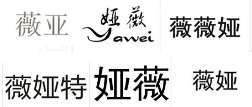 引證商標分別為連江縣春妮貿易有限公司、汕頭市映潮實業有限公司等7家公司或自然人自2009年起申請注冊的“薇亞”、“婭薇”、“薇薇婭”、“薇婭特”等商標。指定使用品類均為第25類,包括服裝、褲子、游泳衣、內衣、嬰兒全套衣等。