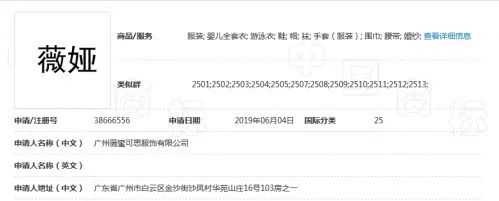 根據這份由北京知識產權法院在去年9月作出的(2020)京73行初8772號判決書披露,訴爭商標為原告廣州薇蜜可思服飾有限公司在2019年6月申請注冊的38666556號“薇婭”商標。指定使用品類包括服裝、嬰兒全套衣等。