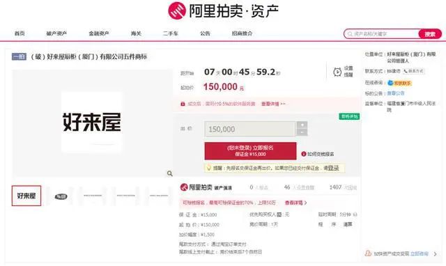 此前記者曾報道,另一家廈門知名廚柜公司——好來屋廚柜(廈門)有限公司的管理人也將于3月8日10時至9日10時在淘寶網阿里拍賣平臺公開拍賣好來屋廚柜(廈門)有限公司旗下5個商標。5個商標包括“好來屋”“米廚”“WORLD VIEW KITCHEN”等,將整體拍賣,起拍價15萬元,目前尚無人報名。