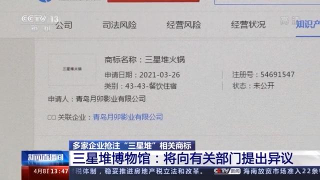 四川省廣漢三星堆博物館景區管理委員會產業發展部部長 任韌:很多商標我們覺得實際上跟三星堆不搭邊,如果被別的企業或者個人利用了這個名字,生產或者銷售一些和三星堆文化不相關的,甚至影響三星堆文化高度的一些產品的話,我們也是不愿意看到的。我們對之前被搶注的一些商標,已經開展了一些采取異議申請、無效宣告、撤銷申請等商標保護的措施。最近這幾天出現了這個情況,我們現在也正在了解收集,(準備)在公示階段提出異議申請,但這個確實對我們來說會耗費大量精力和財力。