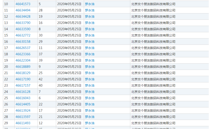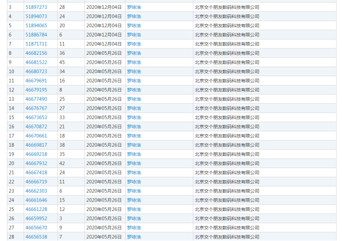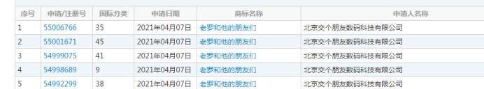 甚至,老羅的“同胞兄弟”都被安排上了,交個朋友公司申請注冊了38件“羅詠浩”商標。