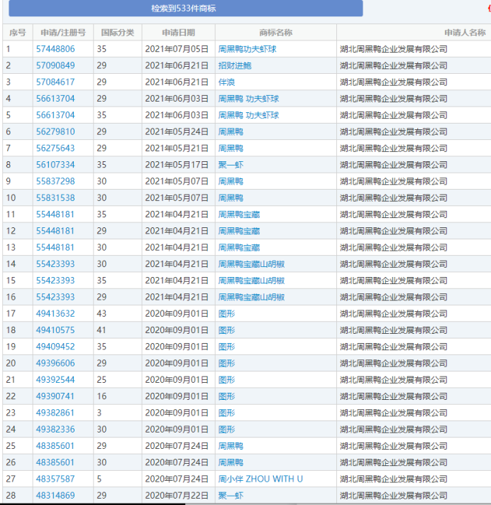 為了防止他人傍名牌,周黑鴨公司申請注冊了500余個“周黑鴨”相關商標,其中還包括“黑鴨周”、“周白鴨”、“周紅鴨”、“周黃鴨”等一系列防御商標。