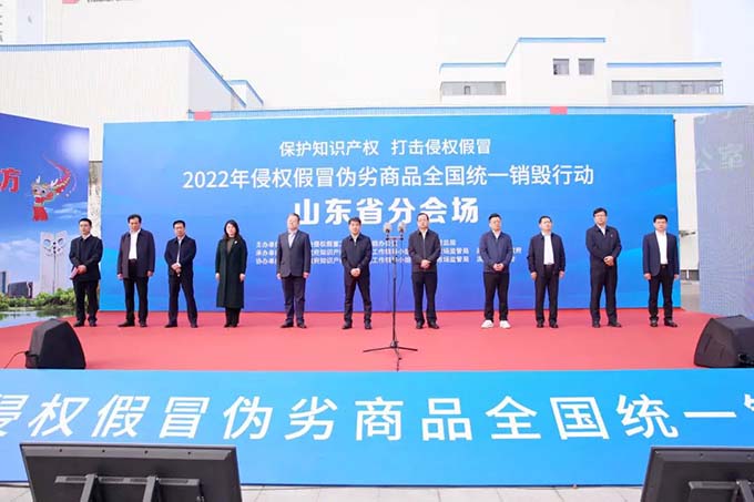 2022年11月10日,按照全國打擊侵犯知識產權和制售假冒偽劣商品工作領導小組辦公室的統一部署和安排,山東省政府知識產權戰略實施工作領導小組辦公室、省市場監管局和濰坊市人民政府聯合組織開展山東分會場銷毀行動。