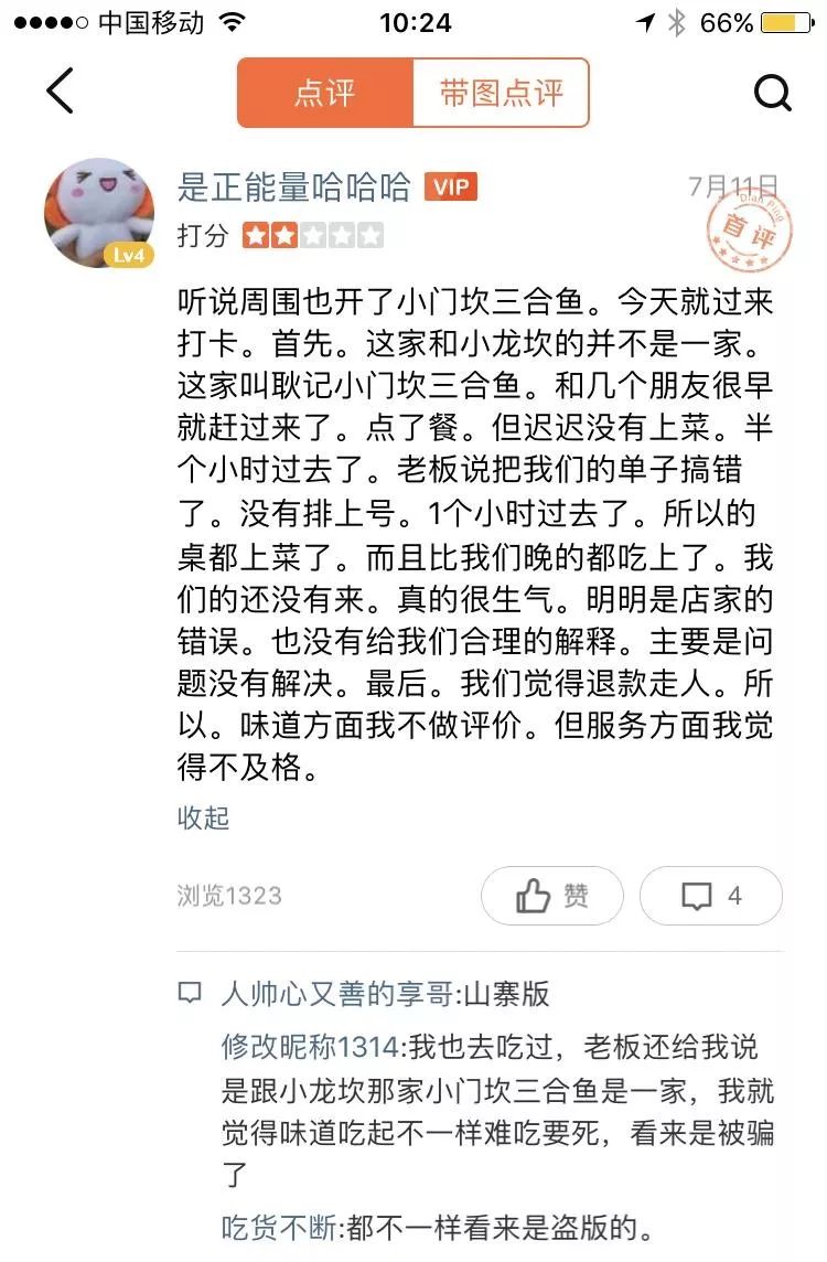 “是正能量哈哈哈”的網友在大眾點評上表示,聽說周圍也開了“小門坎三合魚”,今天特意來打卡,結果發現和小門坎的并不是一家。