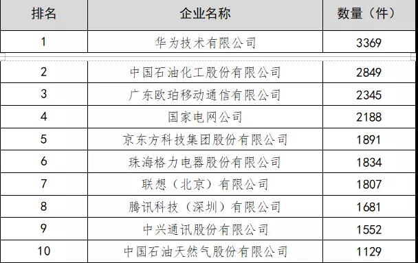 表1 2018年我國發明專利授權量排名前10位的國內(不含港澳臺)企業
