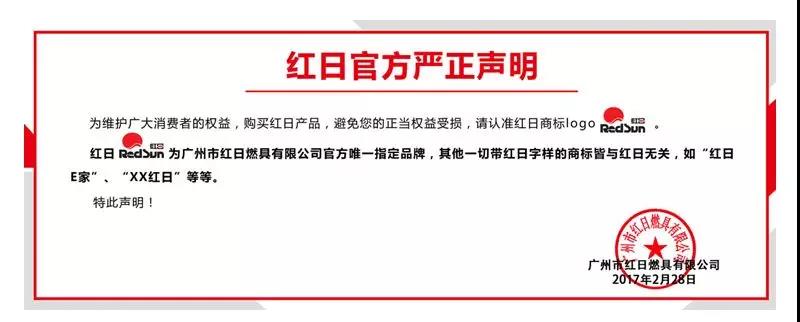 廣州紅日前身是廣州市國營白云機電廠,后者于1993年更名為廣州市紅日燃具公司,隨后又更名為廣州紅日。1997年,廣州紅日第950873號“RedSun紅日及圖”注冊商標被核定使用在第11類商品上。經過多年發展,“紅日”字號在廚房家電行業頗具知名度。