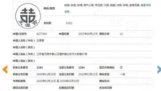 據了解,兩件商標使用領域全然不同,“王老吉及圖”商標核定使用商品為“無酒精飲料;固體飲料”, “王源吉”指定使用商品為“廚房用具;鐵鍋”,何來誤導之說呢?