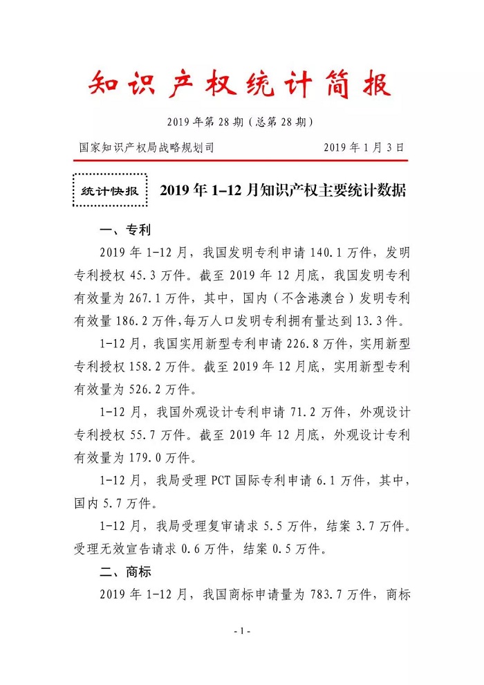 附:2019年第28期知識產(chǎn)權(quán)統(tǒng)計(jì)簡報(bào)