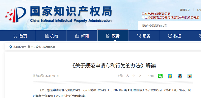 《關于規范申請專利行為的辦法》(以下簡稱《辦法》)于2021年3月11日由國家知識產權局公告(第411號)發布,現對其制定背景和主要內容進行介紹和解讀。