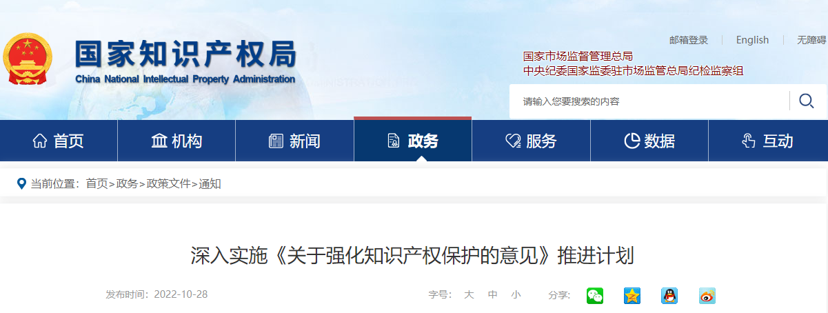 為深入貫徹習近平總書記在十九屆中央政治局第二十五次集體學習時的重要講話精神,全面落實黨中央、國務院關于強化知識產權保護的決策部署,高標準落實《關于強化知識產權保護的意見》,堅持嚴格保護、統籌協調、重點突破、同等保護,促進保護能力和水平整體提升,有力支撐知識產權強國建設,制定本計劃。